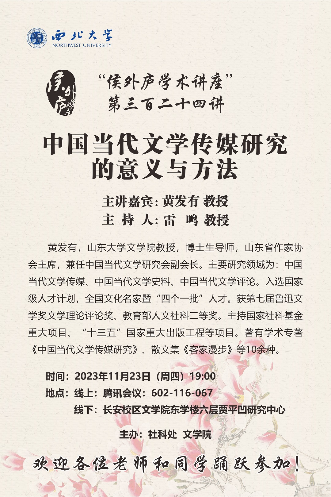 侯外庐学术讲座第三百二十四讲:中国当代文学传媒研究的意义与方法