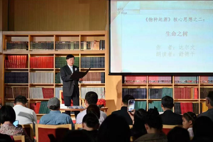 活动现场,舒德干院士朗读了《物种起源》的经典段落,周海宏则朗读了达尔文传记中关于他热爱艺术的经典内容。